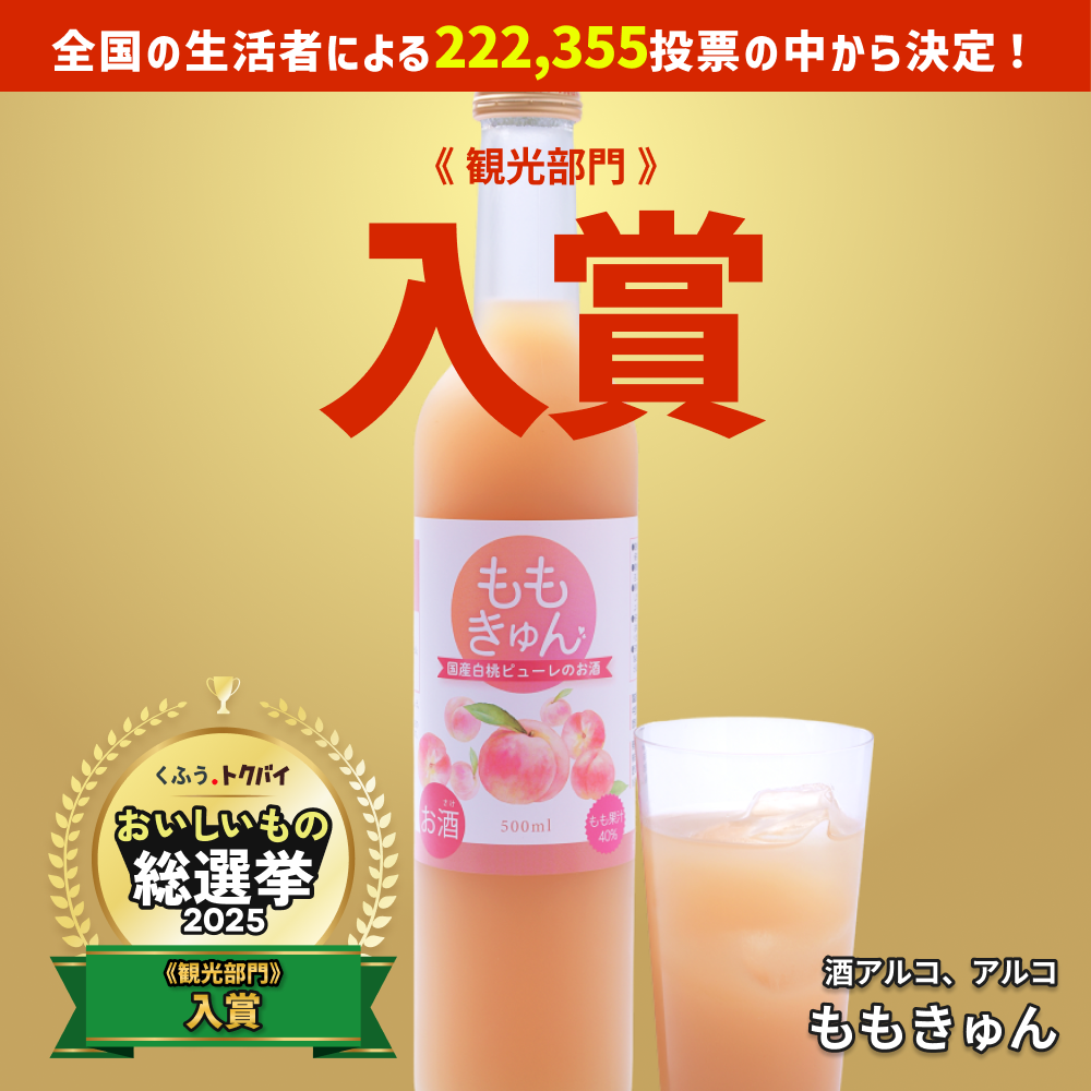 この度チラシアプリ「トクバイ」にて開催された、 おいしいもの総選挙2025にエントリーした 桃のリキュール「ももきゅん」が(観光賞部門)入賞しました! ・ ・ 投票いただいた皆様、ありがとうございます。 ももきゅんは2年 … 続きを読む おいしいもの総選挙2025、受賞しました!