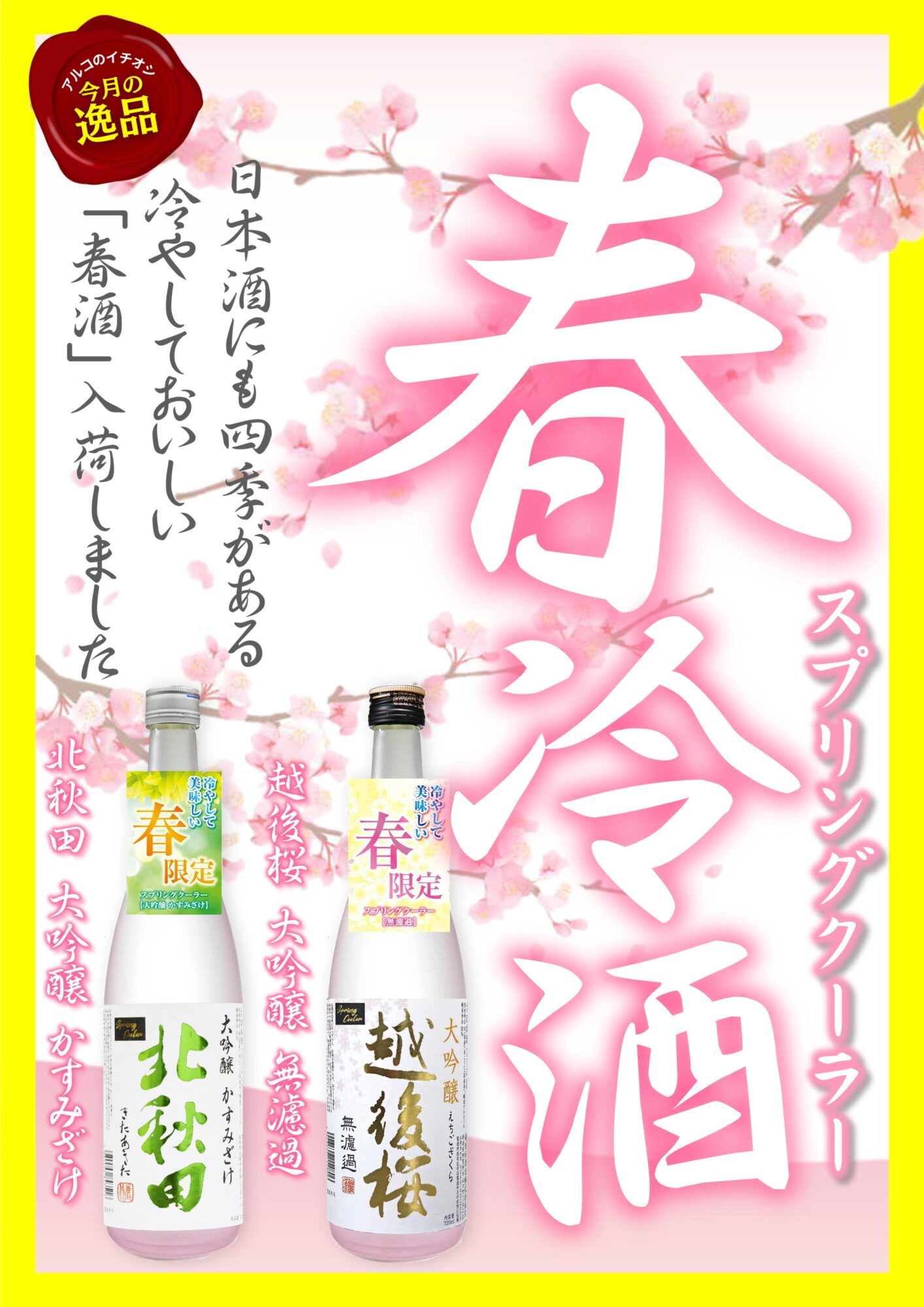 段々温かくなってきましたね! アルコでは春限定酒も続々と入荷しています! ※下記商品は錦店、静岡店、福井片町店では取り扱いのない商品がございます。ご了承下さい。