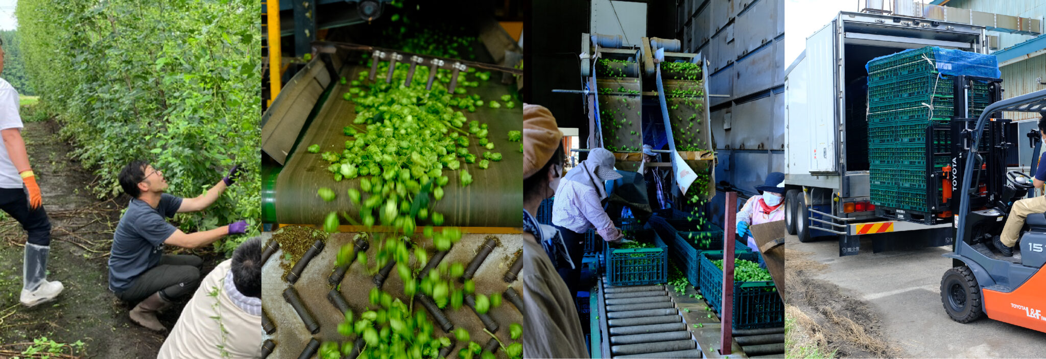 丹精込めて育てたホップを、手間と時間をかけながら丁寧に収穫。