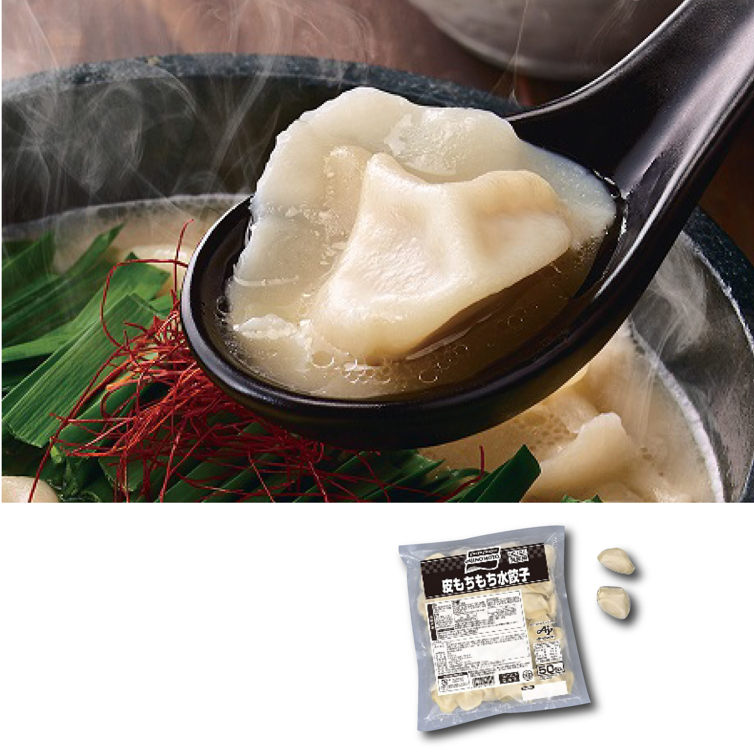 もちもちとした皮の食感!中華飯店風の本格的な水餃子です。冷凍IQFタイプでロスもなし!そのままでも美味しい水餃子ですが、鍋の具材としても重宝します。単価UPが見込める、満足感ある鍋メニューに仕上がります。