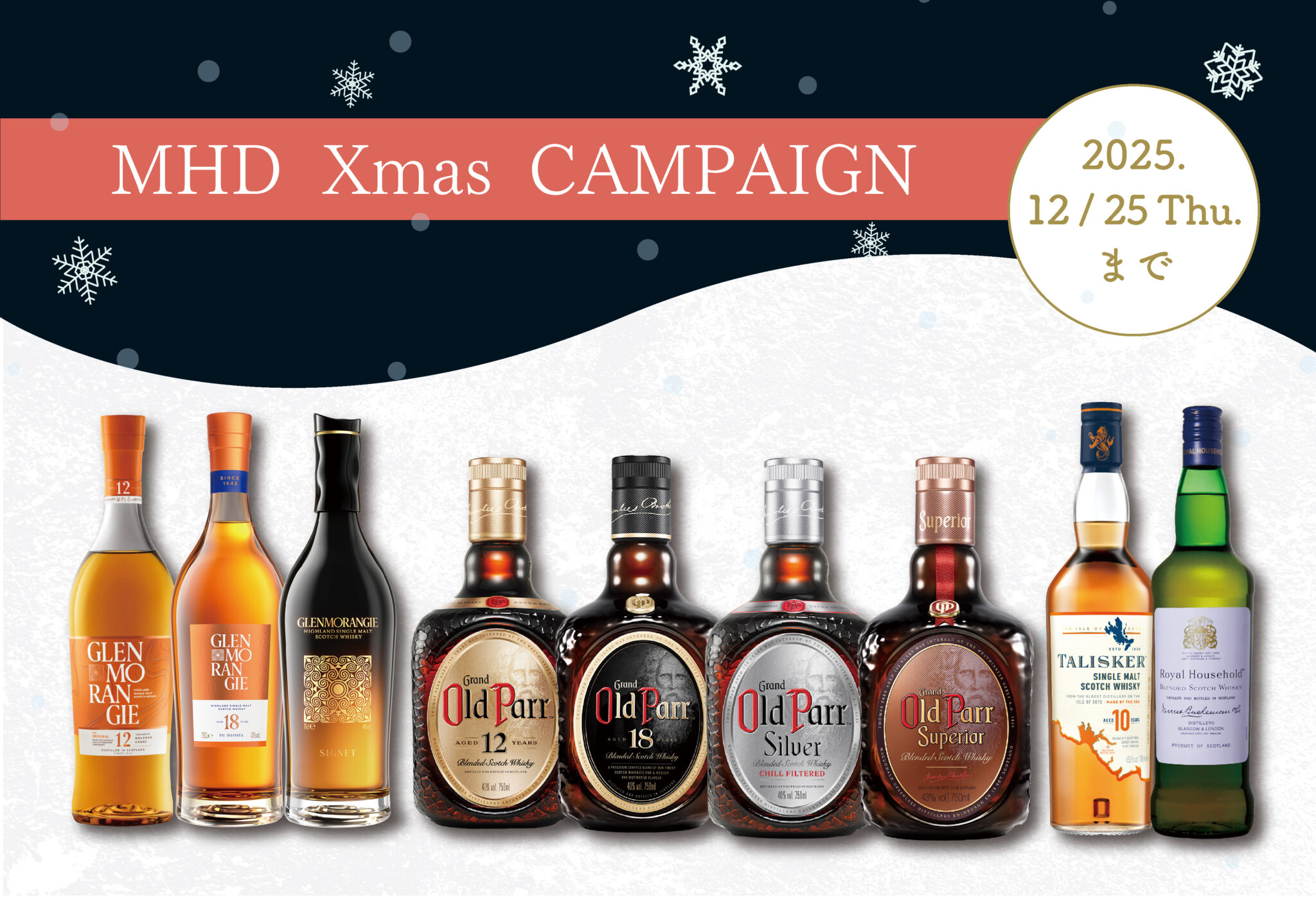 今年12/5まで実施のシャンパン&ウイスキーキャンペーンに続き、人気ウイスキー【MHD商品】のキャンペーンも開始!