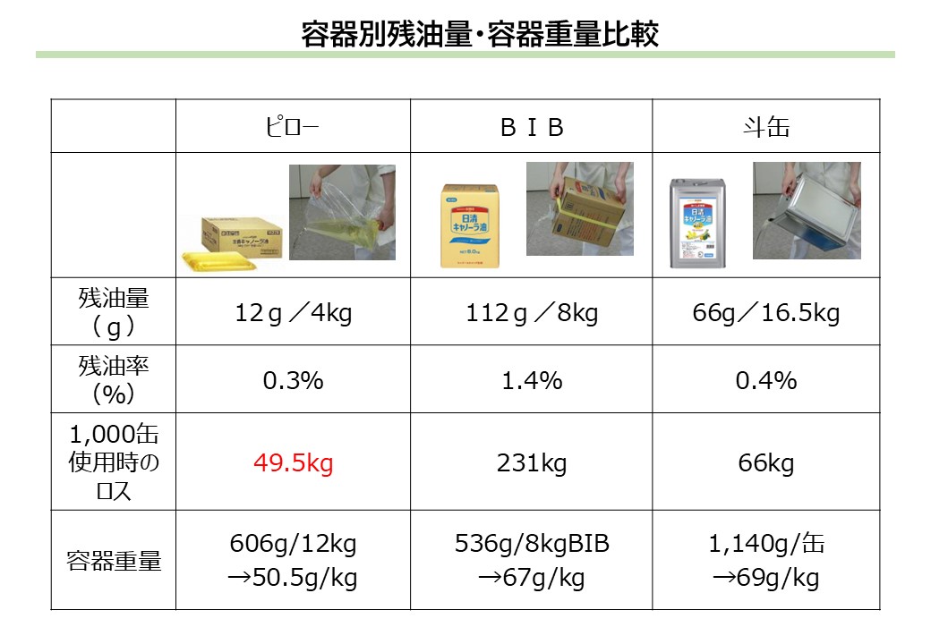 使用した斗缶に廃油を入れているため、ピロー容器では廃油ができないのでは?