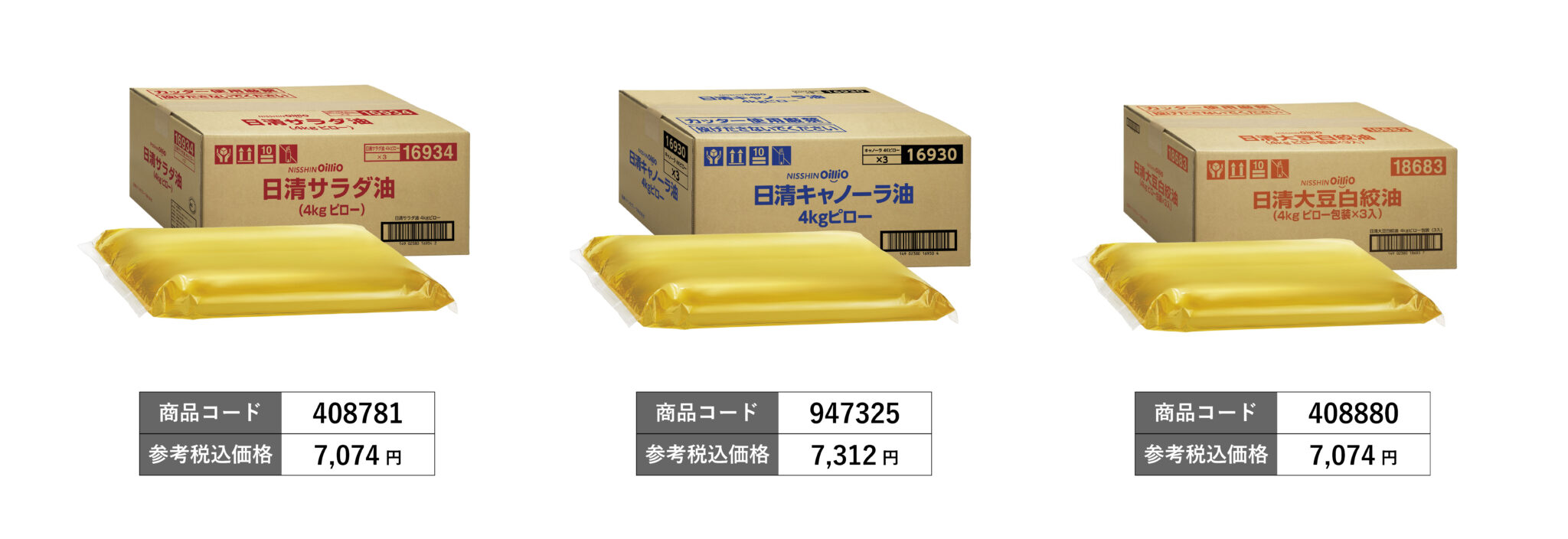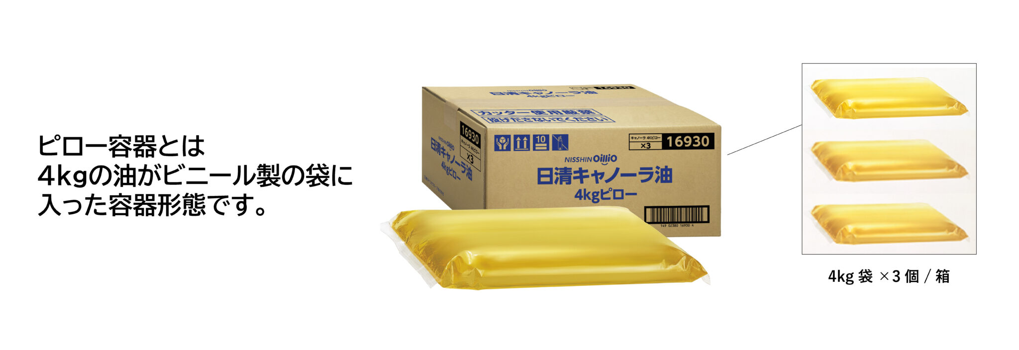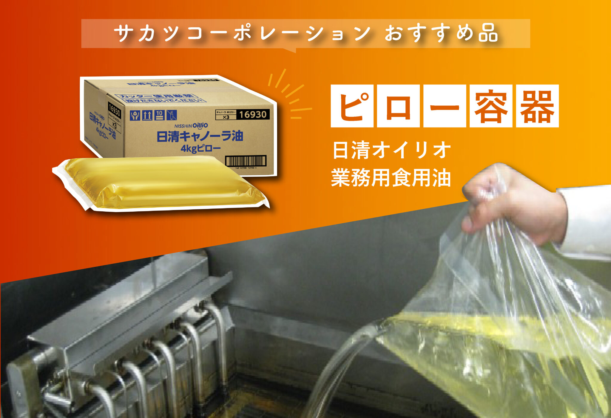そんな時代の終わりを告げる、【業務用食用】日清オイリオのピロー容器油シリーズ!